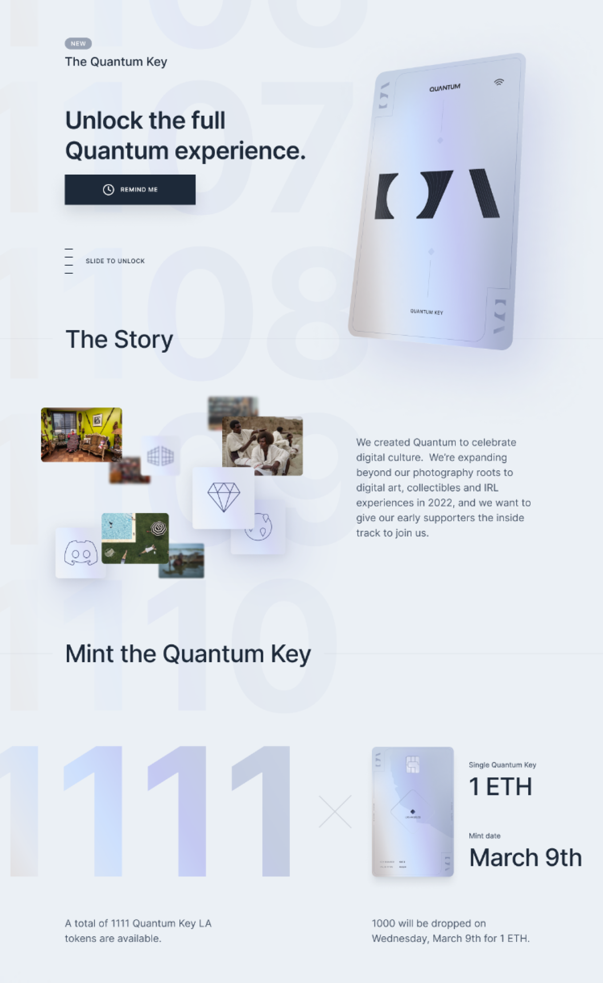Quantum.art was created to celebrate digital culture. To expand beyond photography roots to digital art, collectibles and IRL experiences, a key was created to give early supporters the inside track to join.